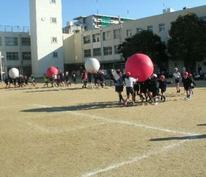 毎週木曜日に行っている、児童集会も25日が今年度最後となりました。今回は、「大玉リレー」を行いました。32のたてわり班を4つのグループに分けて行いました。班のみんなが持ちやすいように工夫した班が早く運ぶことができたようです。