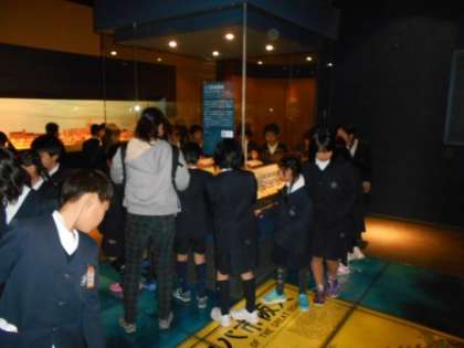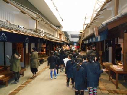 次に、昔の街並みや展示物を見学しました。子どもたちは初めて見る実物に、驚き、感動していました。