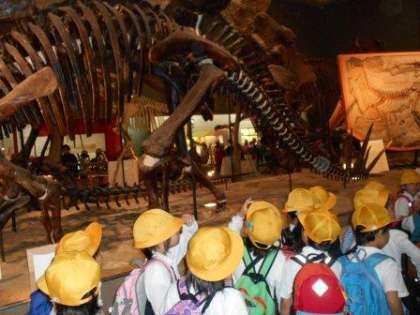 お昼からは芝生広場で仲良くお弁当やお菓子を食べ、その後、自然史博物館を見に行きました。大昔の生物の様子や環境を見ることができ、少し驚きながらも、興味をもって見ていました。