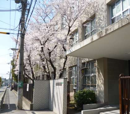 正門付近の桜の花も満開となった4月1日新しい年度をむかえました。7日には新しい1年生が入学してきます。