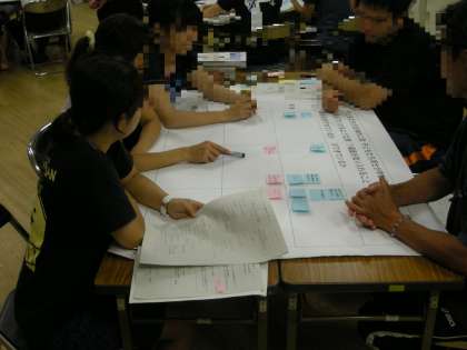 3グループに分かれて、研究授業の成果と課題をまとめ、意見交換をしました。