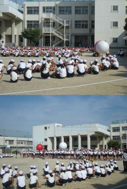 応援合戦、大玉おくり、合同体操(おわりの体操)などを行いました。