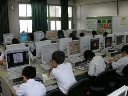 5年生の皆さんは、各自がPCを使って、図案(デザイン)を考えていました。