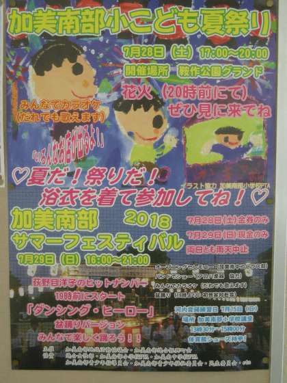 7月28日(土)、昨年同様、地域・PTAの協力のもと、鞍作公園に於いて、加美南部小こども夏祭りを開催しますので、お知らせします。