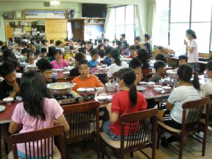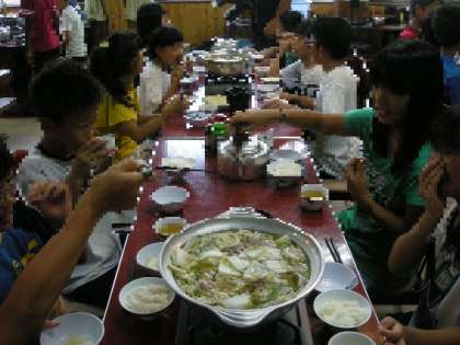 5年生の皆さんは、夕食を美味しそうに食べ、会話もはずんでいました。