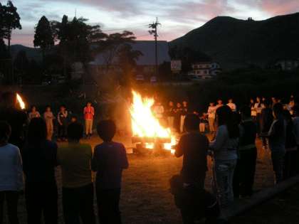 キャンプ・ファイヤーの様子です。レクリエーション係を中心に、ゲーム・スタンツなどを行いました。