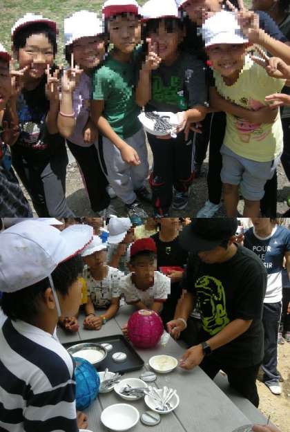 「アイスクリームの作り方を初めて知った。」「冷たくて、美味しい!」など、色々な感想を話しながら、楽しいそうに手作りのアイスクリームを食べていました。