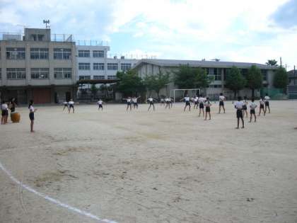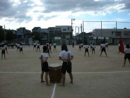 運動会応援団練習の様子です。放課後に、4年生〜6年生の応援団員が一生懸命に練習に取り組んでいます。