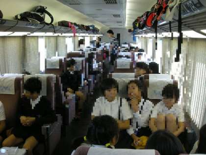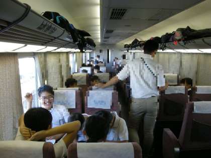 6年生の皆さんは、あおぞら号の中で、おしゃべり、トランプ、ウノなどを楽しんでいました。