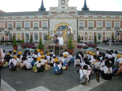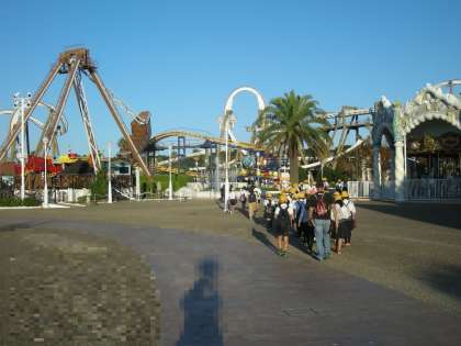 スペイン村でのグループ活動が終わりました。6年生の皆さんは、全員が遅刻することなく集合することができました。園内を通り抜け、ホテルに向かいました。