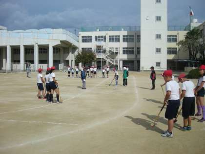 10月31日(水)、地域連携の一環として、地域の方々から5年生の皆さんが、グラウンドゴルフを教わりました。