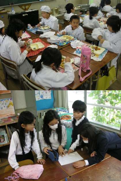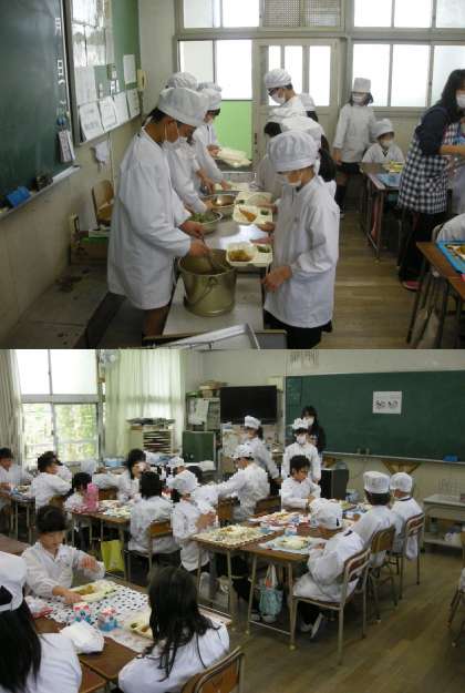 高学年の皆さんが、しっかりと低学年の皆さんをリードして、楽しい給食の時間となりました。最後には、みんなでクイズを楽しんでいました。