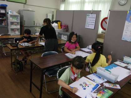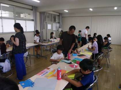 8月1日(金)10:00〜12:00までの間、多目的室と会議室で、PTAの方々を中心として、夏休みの宿題・自由研究を一緒に行う活動をしました。習字・絵画・貯金箱づくりに多数の子どもたちが参加して、アドバイスやお手伝いをしてもらいながら、完成まで一緒に取り組みました。