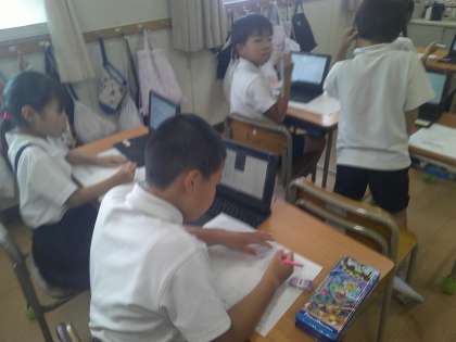 学習用端末を使って、インターネットで開館時間などを調べていました。