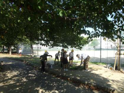 暑さもまだ厳しい中ですが、子どもたちも落ち葉集めなど一生懸命掃除をしていました。