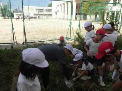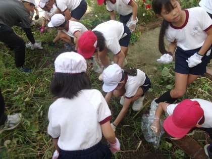 2時間目に2年2組がいもほりをしています。大きいものも出てきています。