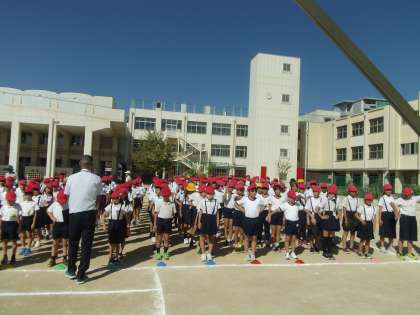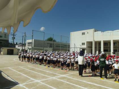 本日、全学年がそろって運動会の開閉会式の練習を行いました。