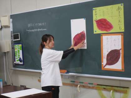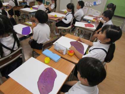「おいもほり」で収穫した「さつまいも」を画用紙に描きました。