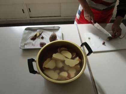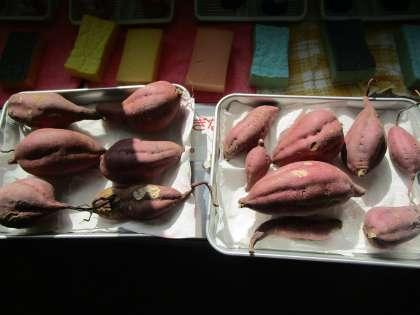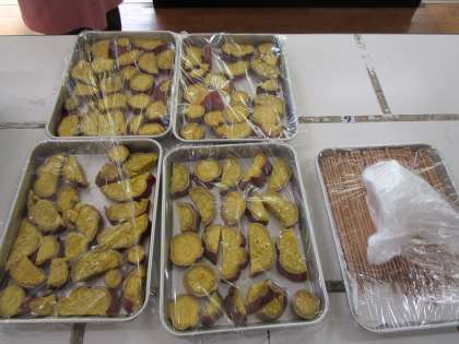 2年生が学習園で育てた「さつまいも」を家庭科室で調理しました。