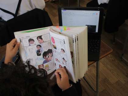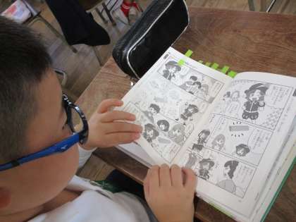一人一人が調べたい本を読んで付箋を貼り、調べてわかったことを学習用端末にレポートとしてまとめる学習です。