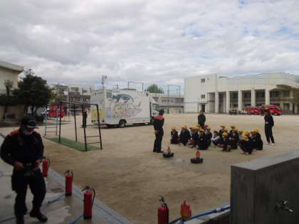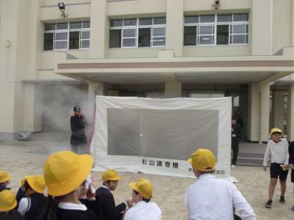 4年生の煙中体験、水消火器訓練です。