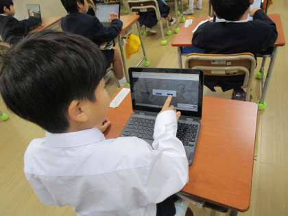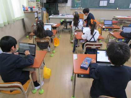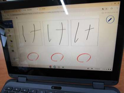 1年生が、学習用端末を使って「ひらがな」を書く練習をしていました。