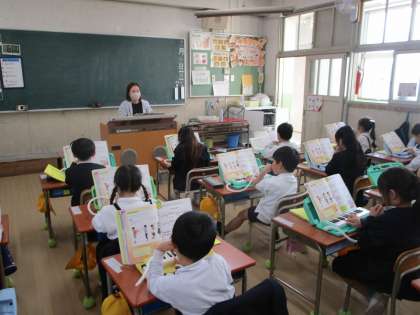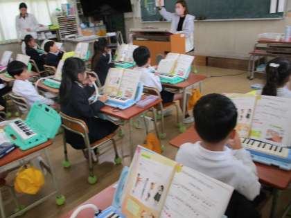 鍵盤ハーモニカの練習をしていた1年生、合奏がとても上手になってきました。