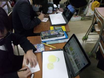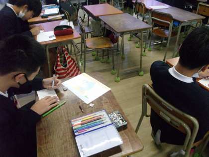 4限も引き続き絵を頑張って描いています。4時間目の終わりで完成しそうにはありませんが、いい作品が出来上がればと思います。