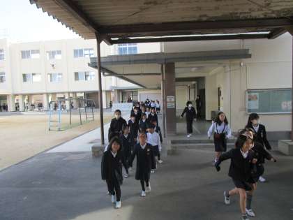 2時間目に、侵入者があったことを想定した避難訓練を行いました。