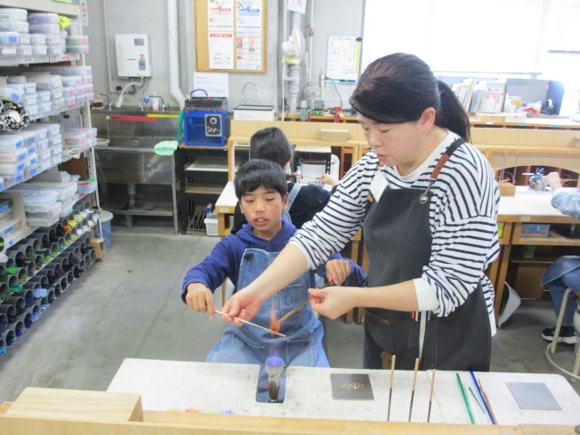 「バーナーワーク体験」でトンボ玉チャームづくり