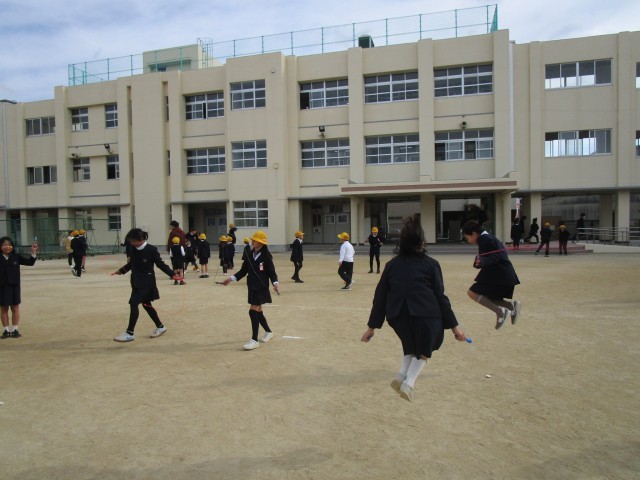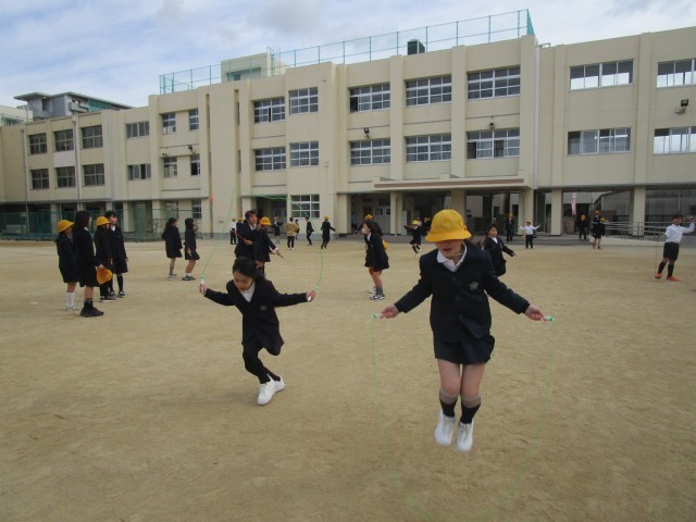 寒くなってくると、子どもたちは教室で過ごしがちですが、今週は「なわとびカード」に色を塗るために、たくさんの児童が運動場で過ごしています。