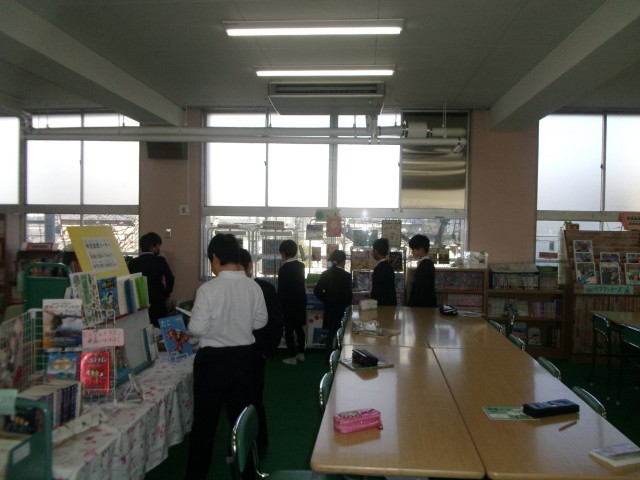 1組はすごろくを使って英語の学習をしています。2組は図書室での活動です。