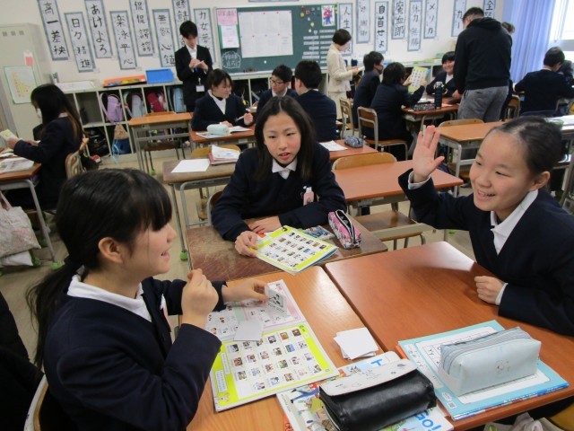 自分が将来なりたい職業について考え、友だちと英語で交流し合いました。