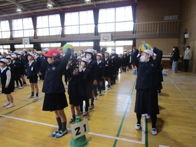 行きは頭上でボールを回し、帰りは股下でボールをリレーしました。