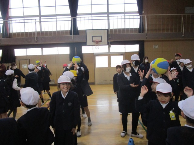 同じく、たてわり班で列を作って「ボール回し」競争。
