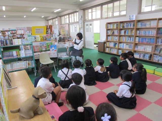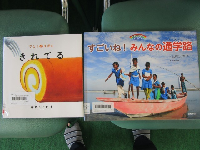 学校図書館司書の方に「きれてる」「すごいね みんなの通学路」の2冊の読み聞かせをしていただきました。