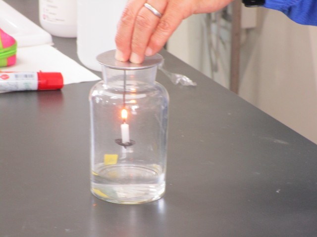 演示実験を興味深く見た後で、グループごとに実験をして確かめました。