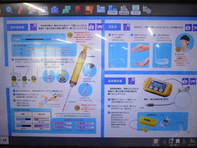 「石灰水」は二酸化炭素によって白く濁ることを実験で確かめました。