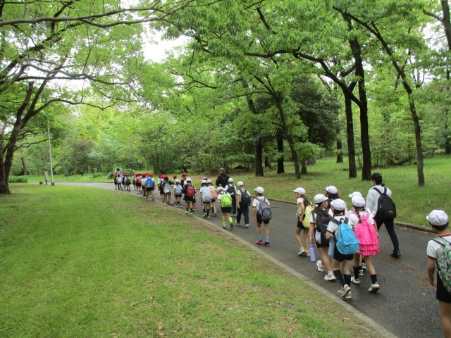 春の爽やかな空気の中、遊歩道を歩いて「冒険ランド」に到着。