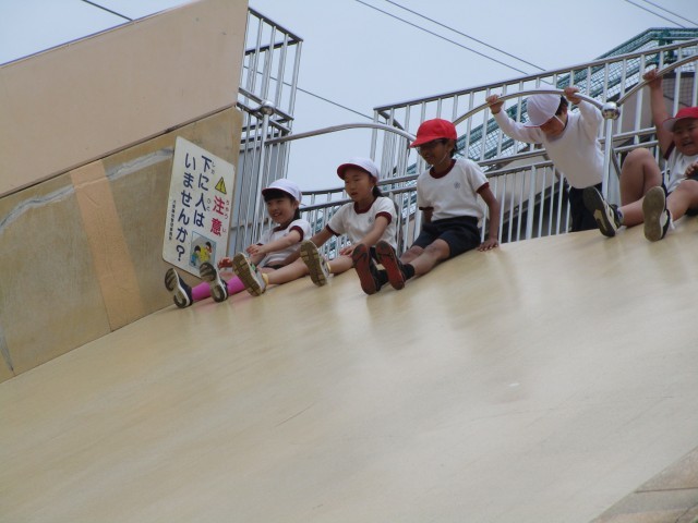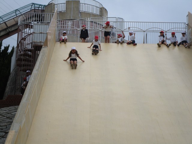 子どもたちはs、大きな滑り台を見つけて、勢いよく駆け出していきました。
