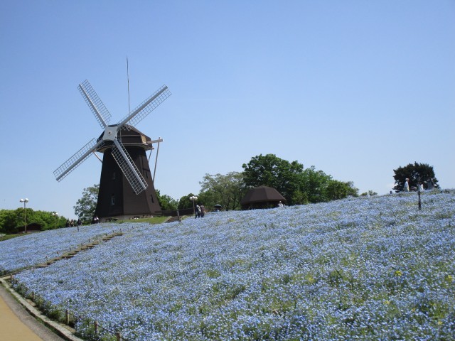 ネモフィラやバラが咲いて素晴らしい景色でした。