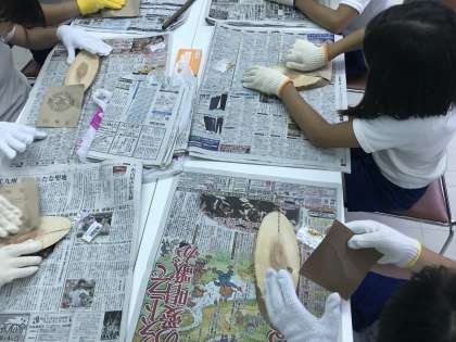クラフト活動が始まりました。紙ペーパーで、木を削っています。完成作品が、楽しみです。