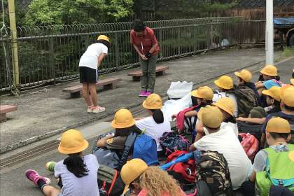 退所式をおこないました。児童の代表がお礼のあいさつをしました。13:30にバス出発しました。約50分後に帰校予定です。