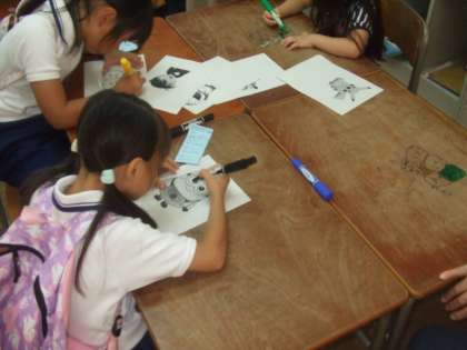 子どもたちはプラバンを一生懸命に作っています。PTAの方も頑張っています。