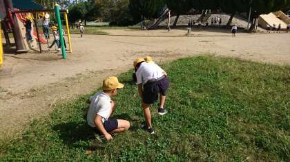 2年生の遠足で大泉緑地公園に来ました。冒険ランドで楽しく遊んでいます。