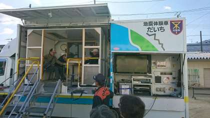 11月10日の日曜日、平野南小学校で平野南地域活動協議会の地域防災訓練が行われました。応急給水所で水汲みの体験をしたり、地震体験車で地震の揺れを体験したりしました。