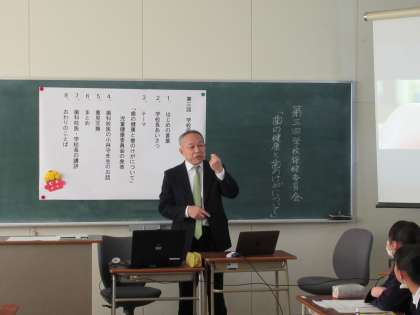 今年は、「歯の健康と歯のけがについて」をテーマに話し合いました。児童健康委員会からは、歯科検診の結果や、むし歯・歯周病の予防についてを、スライドを使って発表しました。歯科校医の小林 守先生からは、スライドを使ってわかりやすく、歯のけがなどの対応についてお話をしていただきました。特に、歯を強く打ったり、かけたときは、すぐに医療機関にいって処置をしてもらうことが大切だそうです。また、児童からの質問にも答えていただき、とても勉強になりました。