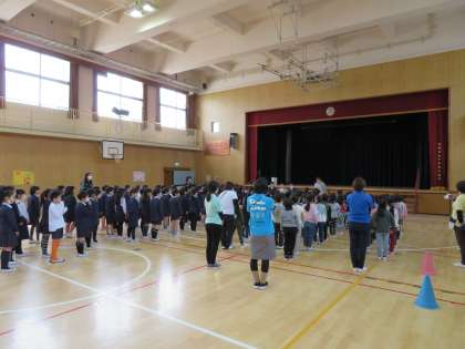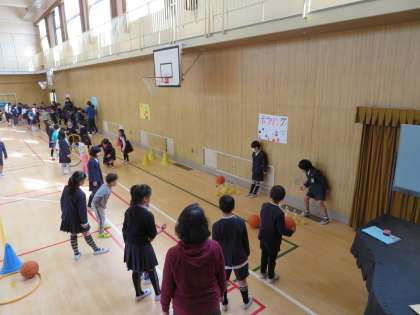 今日は2年生が、常盤会幼稚園をまねいて、遊び交流をおこないました。遊びの説明をていねいにしてくれたり、手をつないで遊びコーナーをまわったりという様子がたのもしくみえました。園児のみなさんも「とてもたのしかった!!」と言ってかえっていきました。