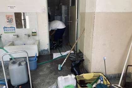 2学期を迎えるあたり、業務委託で、校舎トイレ清掃とコロナに有効な消毒作業をおこなっています。