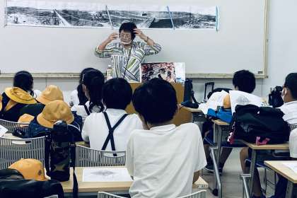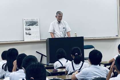 広島市青少年センターで、語り部の方から、貴重な体験をお聞きしています。